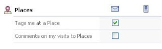 So in other words, if you see a checkmark under the email icon or phone icon, Facebook will email or text you anytime somebody tags you in a Facebook Places post or comments on that post. Unchecking these boxes means that you will not receive these emails or text messages .... which in turn means that you might never know if you've been tagged on Facebook Places (not good). It's better to leave these boxes checked so that at least you will know sooner than later if somebody is tagging you in Facebook Places.